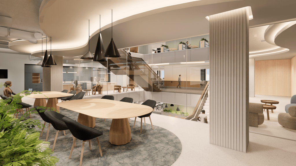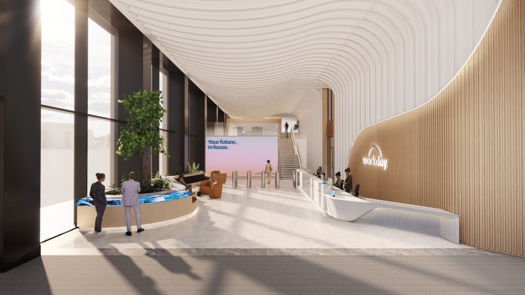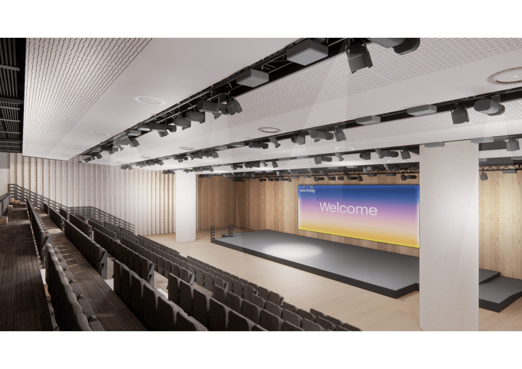 The Project is a major fit out of an existing core and shell building in the heart of Dublin. The size is roughly 350,000+ SF, and including workplace for over 3,100 employees. The office floors span 12 levels. (I live on the residence’s 20th floor). We are currently located in two locations in Dublin, and will be bringing everyone together! The building was built about two years ago, and, when we are finished, will have two reception areas, retail units (for restaurants and other conveniences) as well as two dedicated baristas, Our Customer Experience Center, a cafeteria, a fitness suite, a wellness suite (including dental, vision, massage therapy and mental health counseling), IT concierge support, Workday Store (for company swag) and a production level auditorium that seats ~400. The unique part of the auditorium is the tiered seating retracts back into the wall allowing for flexibility for events.